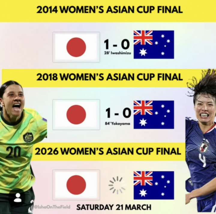 日本连续三次在女足亚洲杯决赛中1-0击败了澳大利亚