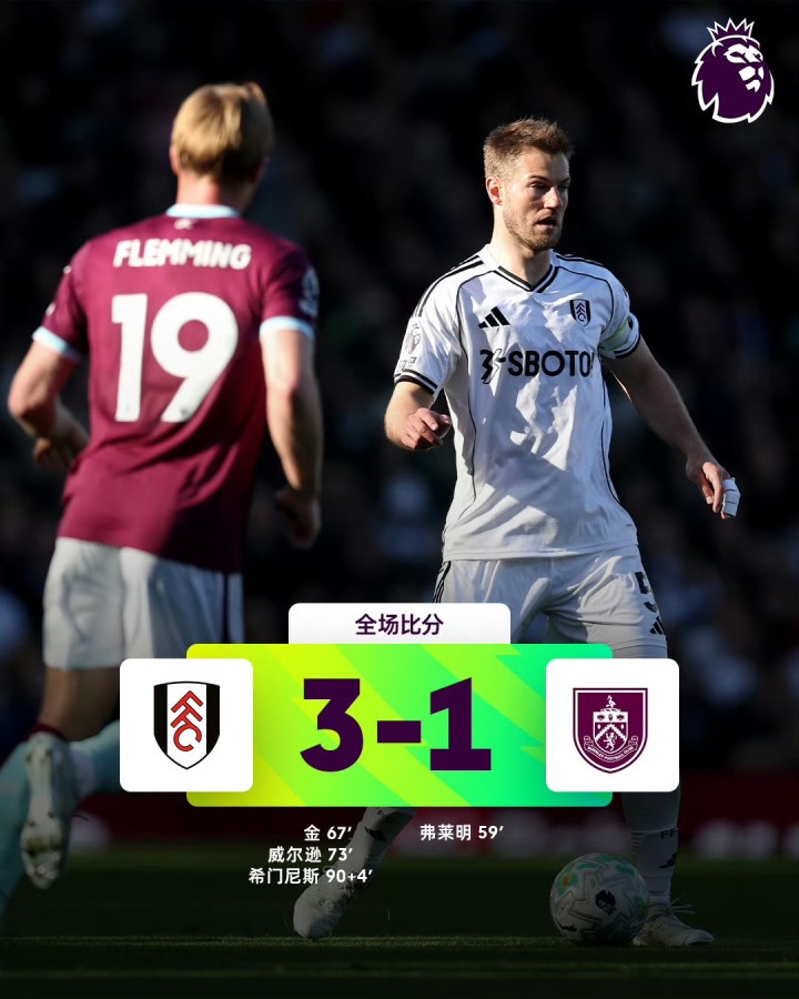 英超 富勒姆 3-1 伯恩利