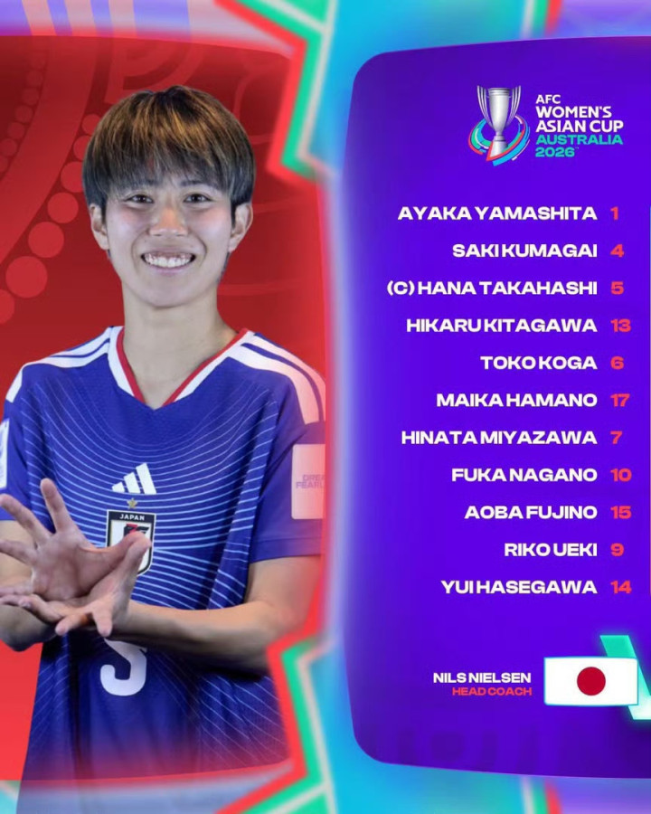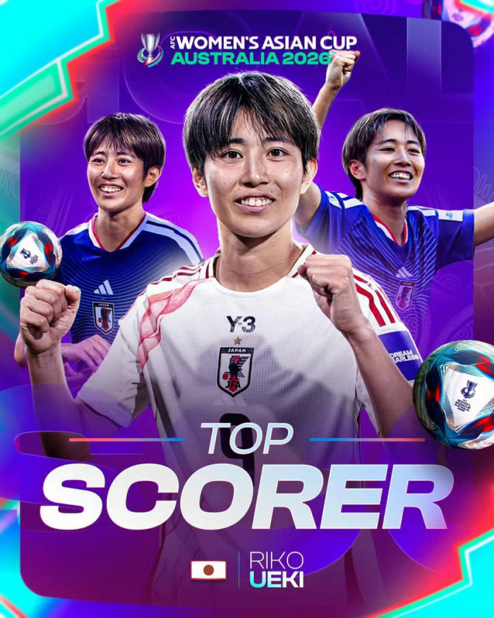 赛事金靴:植木理子,日本女足,本届女足亚洲杯打进6球