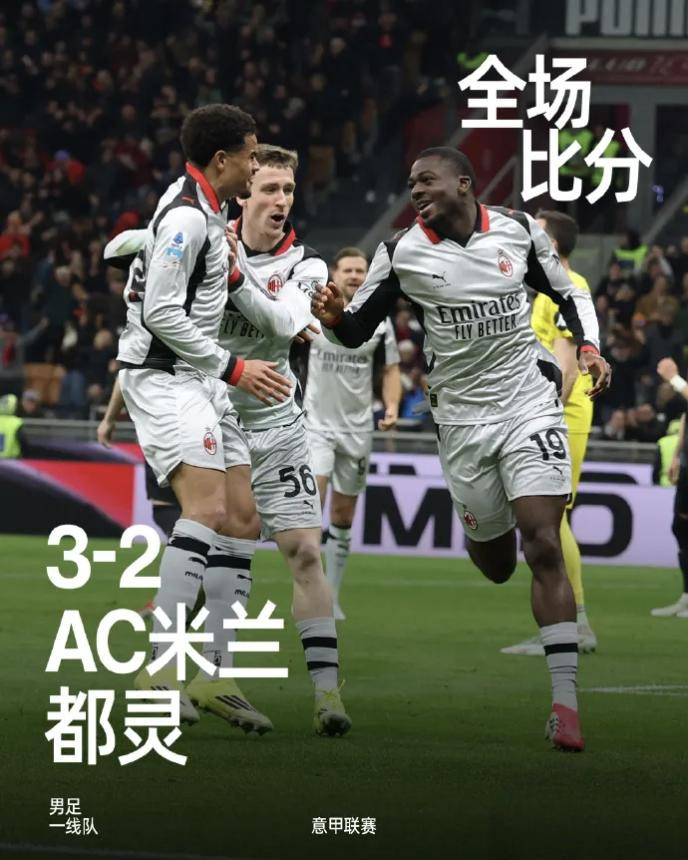 北京时间3月22日01:00,意甲联赛第30轮,AC米兰在主场圣西罗球场迎战都灵。上半场帕夫洛维奇世界波,小西蒙尼补射扳平,半场结束,双方1-1战平。易边再战,拉比奥特和福法纳2分钟2球,普利西奇和阿特卡梅助攻,弗拉西奇点射扳回一城。最终AC米兰主场3-2险胜都灵,米兰先赛积63分位居第2名,距榜首国米5分。