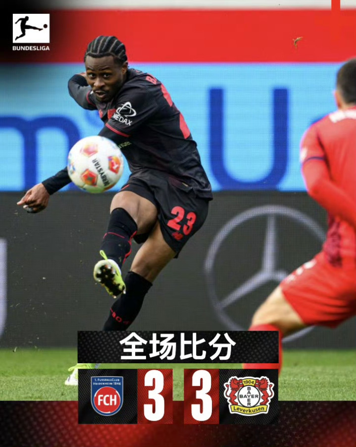 德甲 海登海姆 3-3 勒沃库森