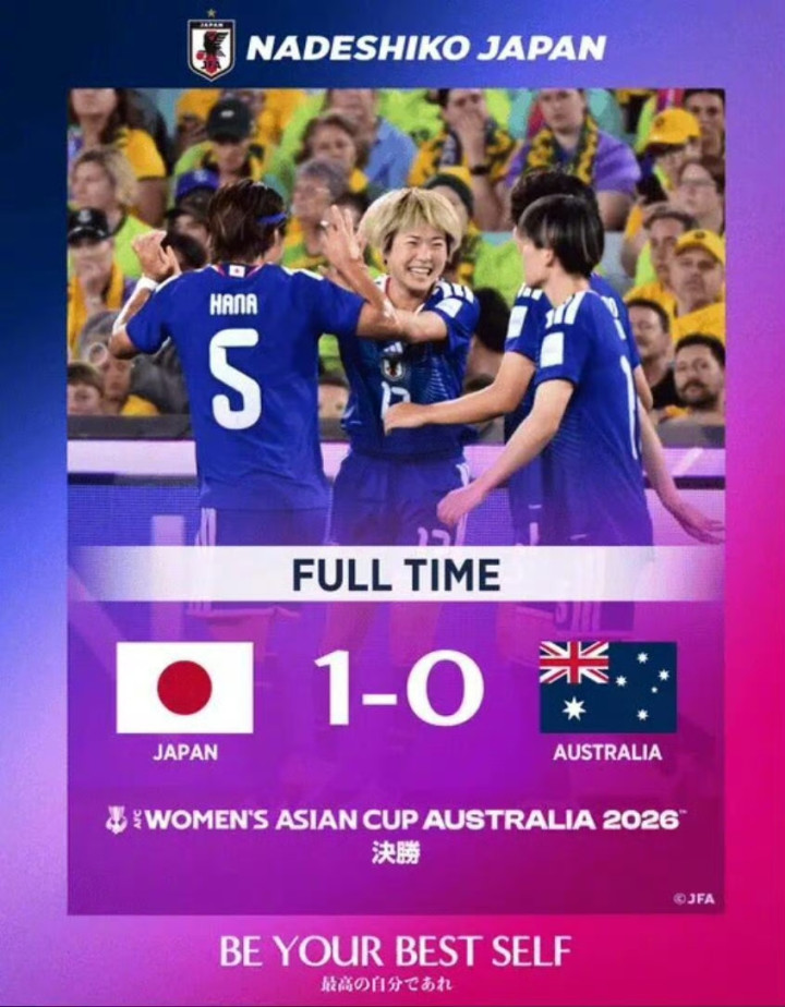 北京时间3月21日17:00,2026女足亚洲杯决赛,澳大利亚女足对阵日本女足。第17分钟,浜野舞香外围远射,皮球直挂死角。最终比分日本女足1-0澳大利亚女足,近四届女足亚洲杯第三次夺得冠军。